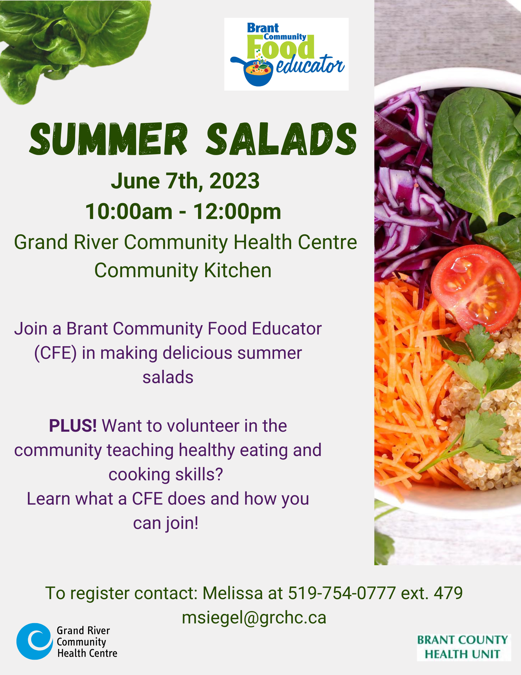 Join our Summer Salads cooking class on June 7th, 2023 to learn some new recipes!
