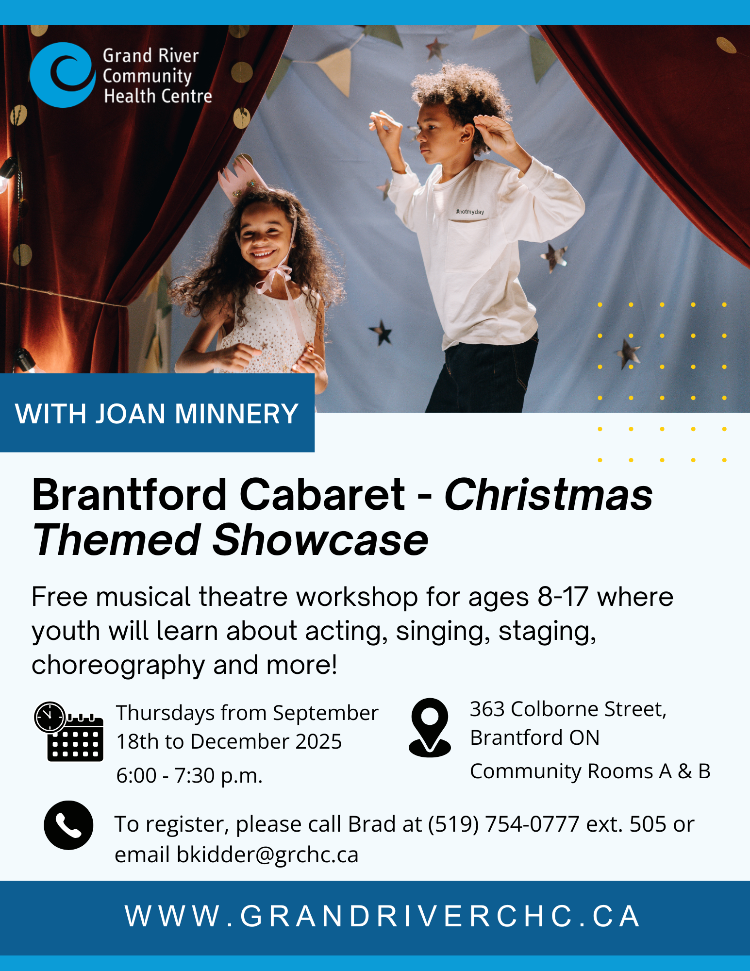 🎬 Brantford Cabaret with Joan Minnery: A musical theatre workshop where youth will learn about acting, singing, staging, choreography and more! Pre-registration is required. For youth age 8-17.